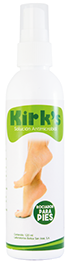 Solución antimicrobial Kirk'sRociador de solución antimicrobial que ayuda a controlar el crecimiento de microorganismos en la piel potencialmente causados por el uso de zapatos cerrados, piscinas, baños o pedicura. Previene la sudoración, el mal olor y el pie de atleta. |